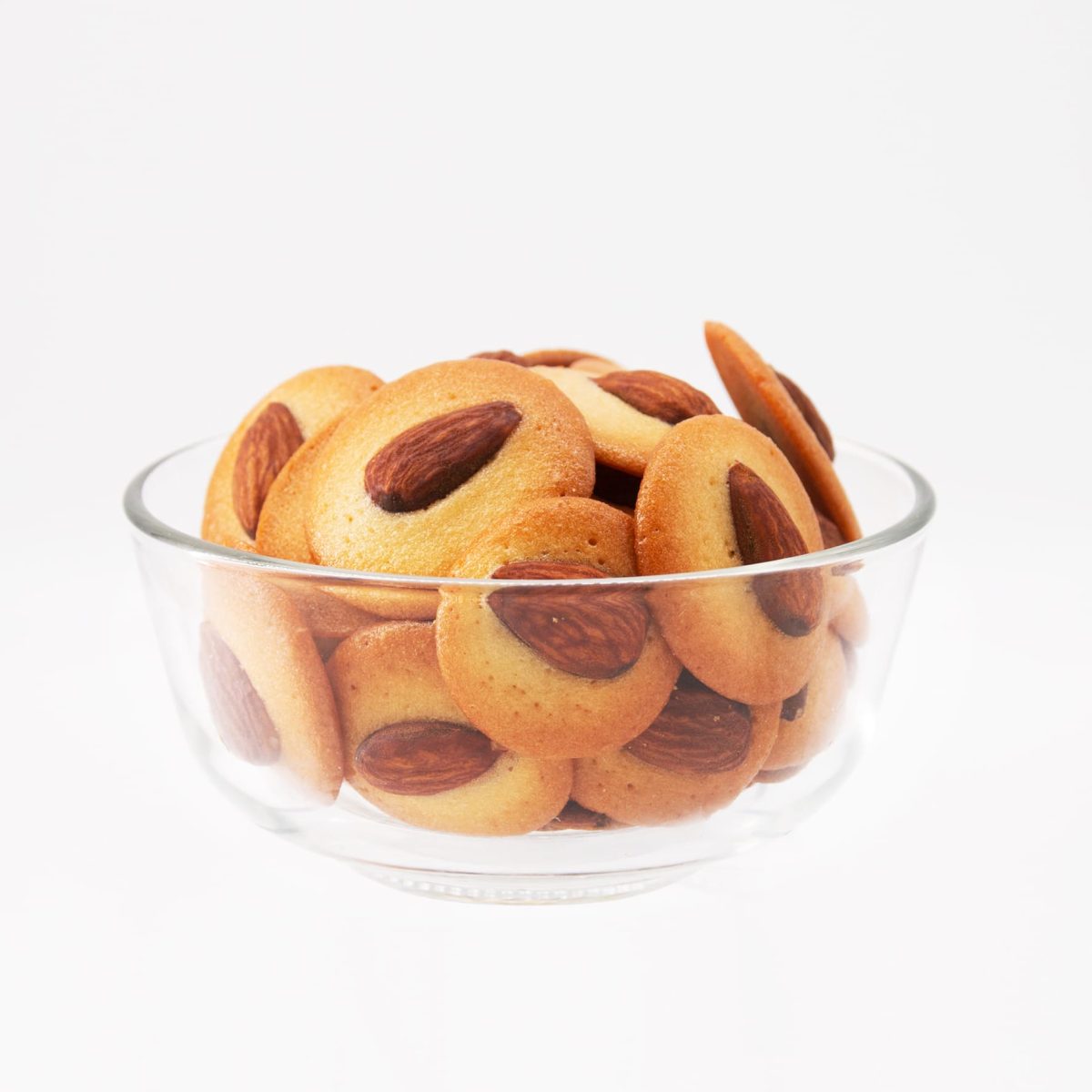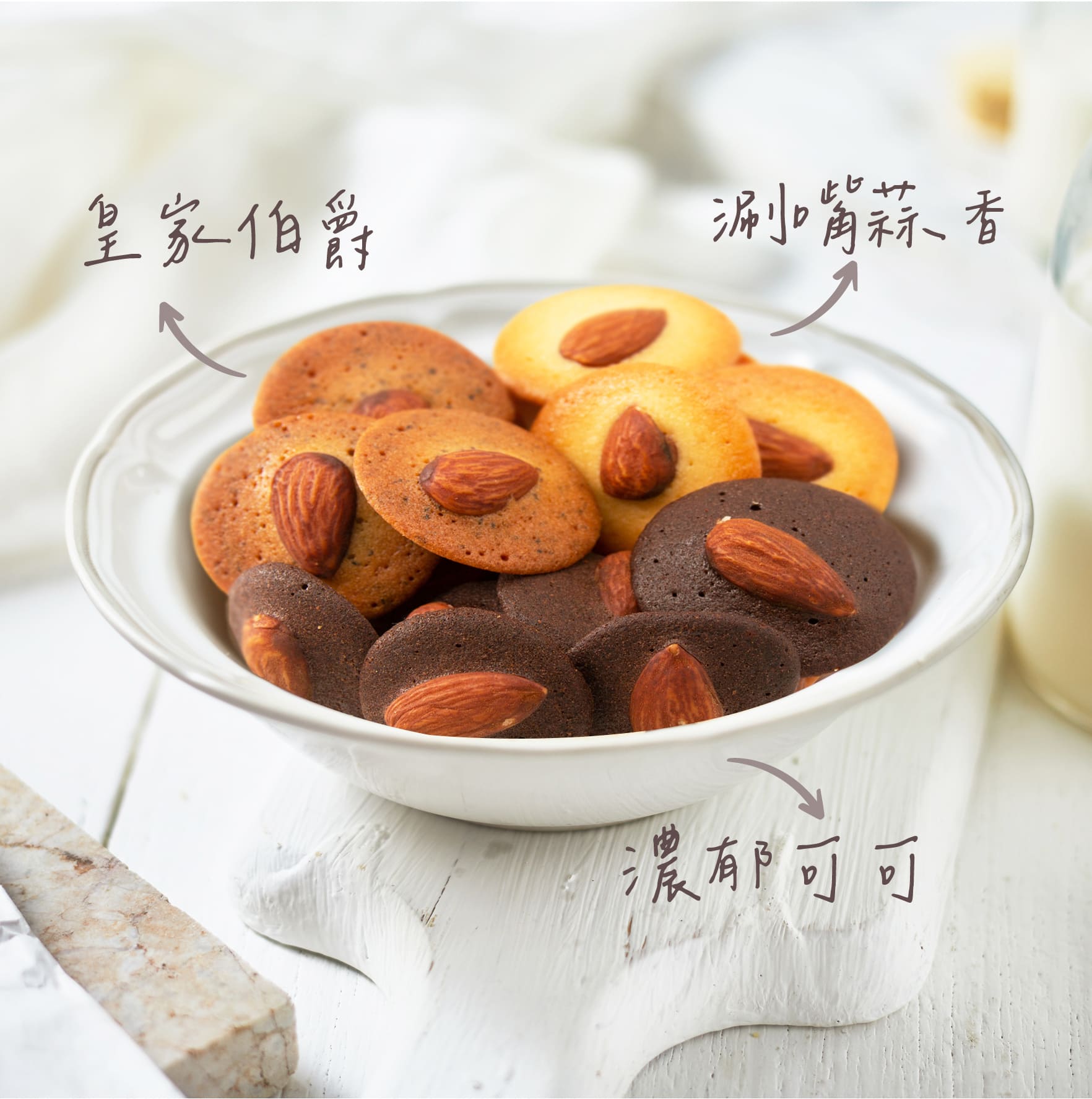 成分:加州杏仁、蛋白、法國無鹽發酵奶油(乳脂、乳酸菌)、小麥麵粉、砂糖、香蒜粉(蒜頭)、岩鹽