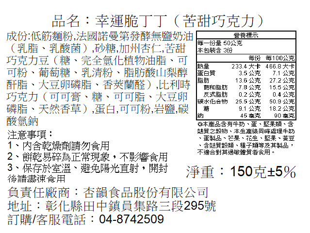 注意事項:**手工製作產品。好杏韻堅持不添加任何防腐劑,開封後如未食用完請盡早鎖上蓋子以免影響堅果脆口感以及品質。