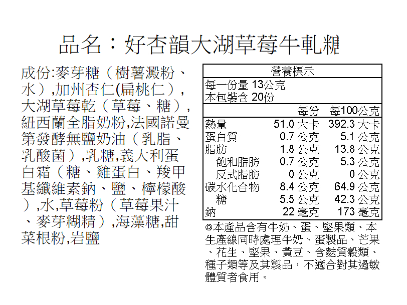2、本生產線同時處理牛奶、蛋製品、芒果、花生、堅果、黃豆、含麩質穀類、種子類等不適合過敏體質者食用!